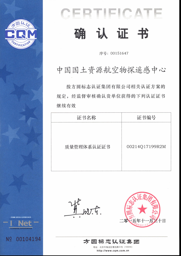 近日,方圆认证集团根据此前派出的审核组现场审核结果,确认中心的质量管理体系符合GB/T 19001-2008/ISO 9001:2008标准要求,并为中心颁发质量体系运行有效确认证书(质量管理体系认证证书编号 00214 Q17199R2M)。根据有关规定,质量管理体系每三年需进行一次重新认证审核,每12个月需进行一次监督审核,以确保体系运行有效。