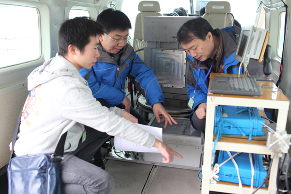 12月5日下午,专家组对冒雨完成当天飞行测量任务的野外工作现场进行检查。在感慨飞行员技术高超的同时,熊盛青副主任希望航空公司和野外队在保证安全的情况下,再接再厉、保质保量的完成地调局下达的飞行测量任务。