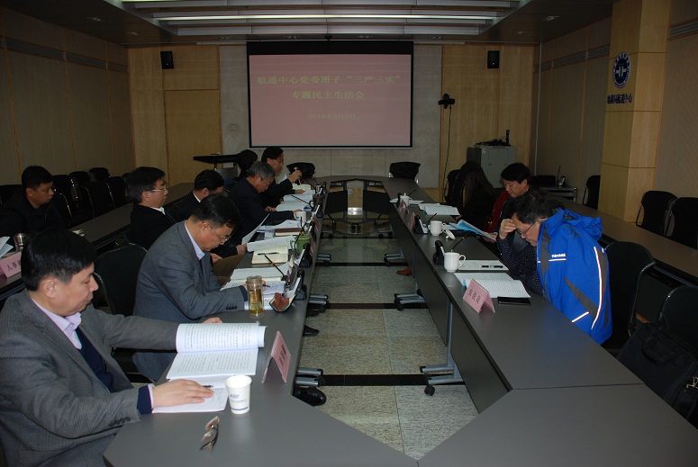 2016年2月2日上午,航遥中心党委召开领导班子“三严三实”专题民主生活会,会议由中心党委书记温国勇同志主持,局党组成员、副局长李金发同志出席会议并做重要讲话,局人教部副主任安俊良、机关党委办公室楼红英等同志到会指导。