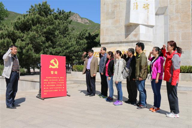 为积极贯彻落实中心党委工作部署,落实全面从严治党要求,认真开展“两学一做”学习教育,提高党性修养、增强党员意识,5月6日,离退休中心在职党支部组织全体党员和入党积极分子到平北抗日战争烈士纪念园开展主题党日教育活动,缅怀先烈,进行爱国主义教育并在纪念碑前举行了党员重温入党誓词的宣誓活动。