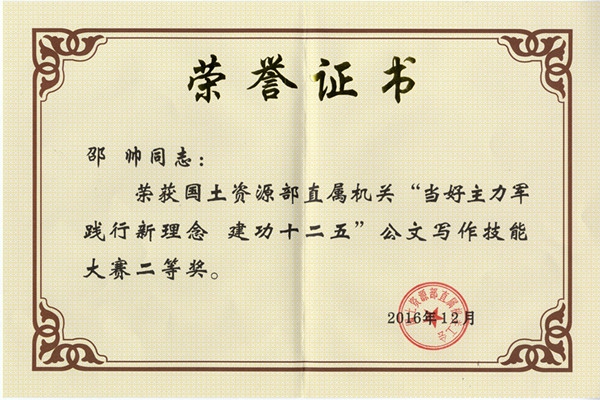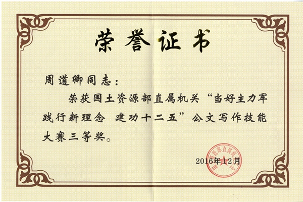 根据国土资源部直属机关工会《关于开展“当好主力军、践行新理念、建功十二五”公文写作技能大赛的通知》有关要求,按照中心领导批示精神,工会积极组织干部职工参加此次大赛,经过梳理,选报了规划方案、经验材料、领导讲话、请示报告、简报通报、学习体会等六类文种九篇公文参加比赛。中心荣获公文写作技能大赛优秀组织奖;邵帅荣获此次比赛的二等奖;周道卿荣获此次比赛的三等奖。希望中心干部职工以此次活动为契机,向获奖者学习,促进全体干部职工公文写作技能的提高。