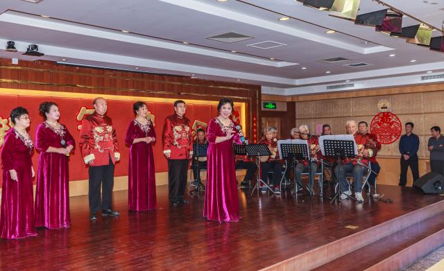 接下来的文艺演出活动更是高潮迭起,体现了老同志健康向上的精神风貌和丰富多彩的文化生活。航遥老年合唱团带来的承载着几代人肺腑心声的歌曲《妈妈教我一支歌》拉开了序幕,舞蹈队带来的藏族舞蹈《浪拉山情》、《珊瑚颂》、《青花瓷》优美深情、编排美妙,配乐诗朗诵《让我们精致的老去》深情款款,小提琴合奏和书法《墨宝》的联合演出获得了阵阵掌声,京剧社带来的《名段联唱》更是赢得一片叫好声,模特队的《伞韵》和《旗袍表演》优雅亮丽、气势不凡、令人振奋,《歌曲联唱》和《我爱你中国》的倾情演出更是将联欢会推向了高潮,给整台团拜会增添了浓厚的节日氛围。整台节目都是老同志自编自导自演,深受大家欢迎。演出中穿插了抽奖活动,分设一、二、三等奖,分别邀请了中心领导和离退休老同志为大家抽奖,在欢快的气氛中,36位老同志喜获奖品。活动现场载歌载舞情深意浓,欢歌笑语不绝于耳,在此向团拜会演出辛苦付出的演职人员和职能部门表示衷心的感谢!
