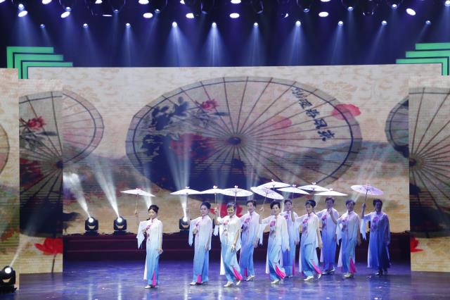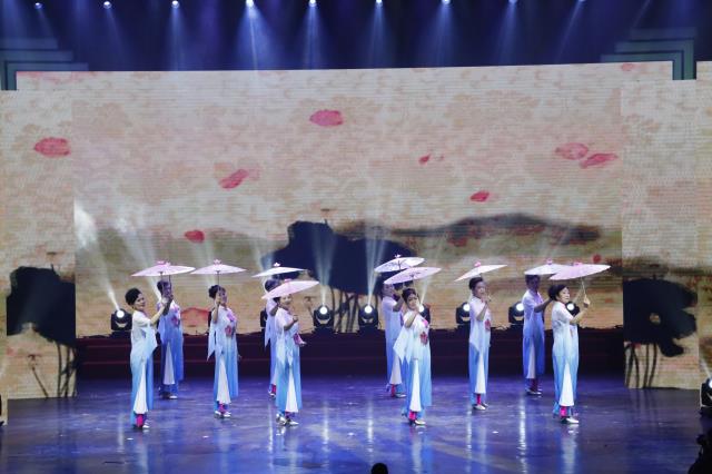 本次模特队参演的节目是以江南风情为主题的《伞韵》,巧妙的队形变换、复古飘逸的服装、精致柔和的纱伞,配以欢快悠扬的乐曲,在灯光舞美的烘托下,充分展现了模特队员们端庄秀丽的身姿与曼妙灵动的编排。京剧社老同志们登台表演的《京剧名段联唱》,6位演唱者分别表演了京剧中各个派别的代表唱段——张派的《苏三起解》、杨派的《三家店》、程派的《锁麟囊》、荀派的《红娘》、马派的《淮河营》、梅派的《穆桂英挂帅》,加之阵营强大的文武场伴奏,气势恢宏、精彩绝伦,赢得在场观众的阵阵掌声。
