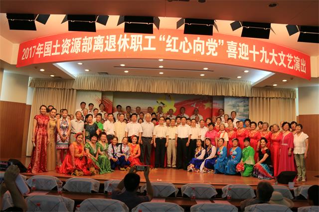 6月29日上午,由部离退休干部局举办的“红心向党”国土资源部离退休职工喜迎党的十九大文艺演出,在部综合楼B503会议室隆重举办。国土资源部党组书记、副部长孙绍骋同志,国土资源部党组成员、国家土地副总督察严之尧同志,国土资源部副部长、党组成员赵龙同志等领导及各直属单位的领导与四百多名离退休老同志欢聚一堂,共叙红色历史,传承国土情怀。孙绍骋书记代表部党组致辞,为国土资源系统老同志们红心向党、永不褪色、不忘初心、乐享桑榆的精神点赞!
