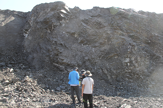 由于全疆大部分地区都出现了今年入夏以来的最高温,工作区酷暑炎热,每日最高温都达到38℃以上。为了顺利完成野外采样任务,在合理规划路线,提前做好防温降暑预案的基础上,大家不畏野外酷暑炎热,互帮互助。最终在吉木萨尔、克拉玛依油气试验区共徒步完成地质路线踏勘50余公里,采集了近100件不同油气含量的油页岩、油砂等实物样品,为下一步室内烃类分析、光谱测试提供了全面的试验样本。(卫星应用研究中心)