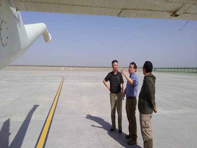 8月28日-31日,中心副主任、总工程师熊盛青同志、中心纪委书记许庆丰同志带队前往新疆维吾尔自治区巴音郭楞蒙古自治州且末县,慰问了在祖国边疆作业的勘查子项目组全体人员和珠海中航通用航空公司的作业机组成员,并对“塔里木盆地中东部航空重磁综合测量”勘查子项目开展野外质量检查及对野外党风廉政建设、安全、保密等工作进行调研和检查。