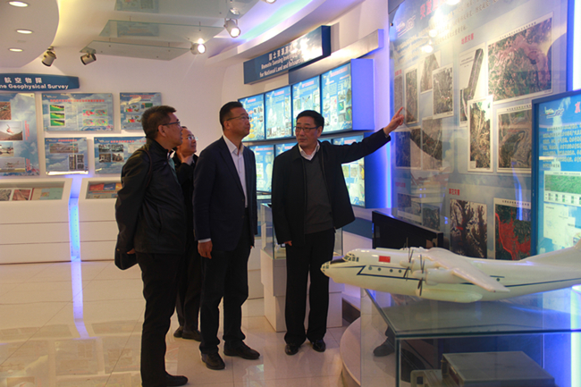 马世军局长一行还参观了物探遥感中心展室和卫星运行机房。