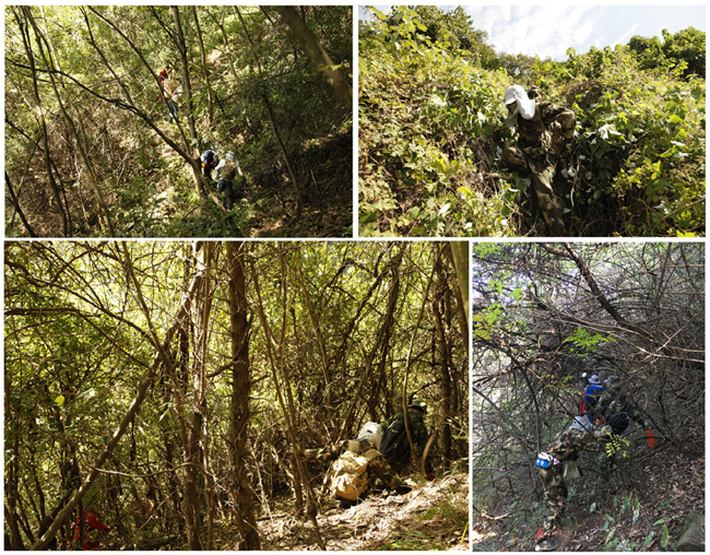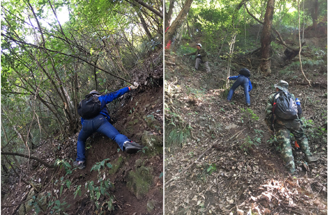 本次工区处于秦岭山区,涉及范围较大、地层单元较多,山陡路峭、交通不便,山体崩塌、洪水等灾害给野外工作带来巨大困难,沿途的毒虫毒蛇和各种不知名的毒草也都增加了野外工作的危险性。野外队员们团结一致,践行“责任、创新、合作、奉献、清廉”的新时代地质文化,克服地质灾害等影响,艰难而圆满地完成了测量任务,为工区的航空物探(磁、放)资料解释获取了第一手资料。