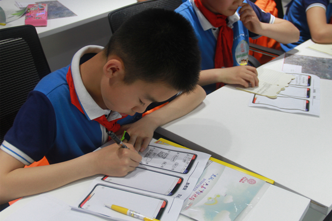这是“发现·共享”学院路城市穿越节科普活动的现场,来自海淀区第三实验小学、北京林业大学附属小学、北京科技大学附属小学、北京石油学院附属小学的160名小学生在航空物探遥感中心体验“熟悉的陌生人”这条趣味性和挑战性并存的比赛路线,“科考+比赛”的科普形式让这4支科考小队的兴致格外高涨,一双双小眼睛里都透露着对遥感科学的求知渴望。