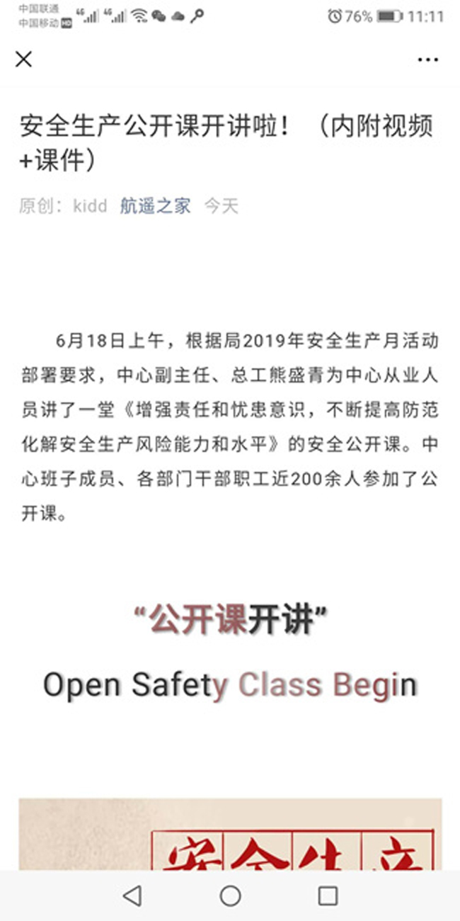 航空物探遥感中心将课程录制的视频和课件制成微信链接,方便未能到场听讲的野外人员进行学习,真正做到了基地、野外“共度安全月”,共同为中心安全发展贡献力量。