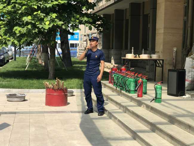 在培训中,消防中队姚健指导员讲解了火灾事故案例、初期火灾的扑救、灭火器的种类性能和消防水带的使用方法等消防安全知识。