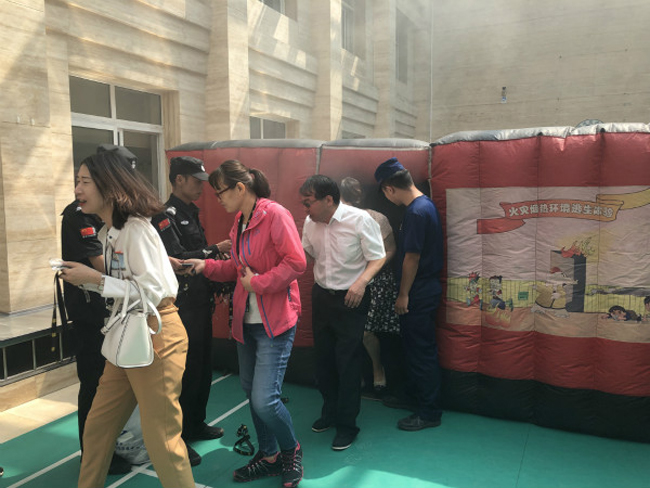 培训结束后,中心副主任熊盛青下达疏散命令,模拟“火灾”烟雾迅速扩散,警报声立即响起,全体干部职工迅速离开会场和工作岗位,沿逃生路线快速有序地撤离到遥感楼门前广场,整个紧急疏散过程共计用时3分10秒。本次活动还让中心职工感受了模拟火灾现场的“逃生帐篷”,实际演练了灭火器的使用方法,并现场讲解了火场逃生自救、人员疏散等基本消防知识。