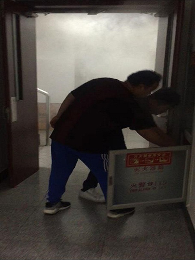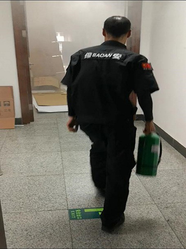 演练正式开始后,报警人报告放射源库和档案室门口发现烟雾,随后烟雾弥漫楼道,监控室警报响起,中控室、保安室、航空物探空勤仪器室和人事处相关人员迅速到位。由于烟雾上升迅速到达遥感楼西侧四层至五层,安保人员第一时间对现场进行保护隔离并对附近的干部职工进行疏散。安保人员迅速控制并消灭火情后,放射源室和档案室技术管理人员对火情周边的放射源库和人事档案室进行开库检查,排查排引起烟雾的原因后及时解决,并向总指挥汇报。
