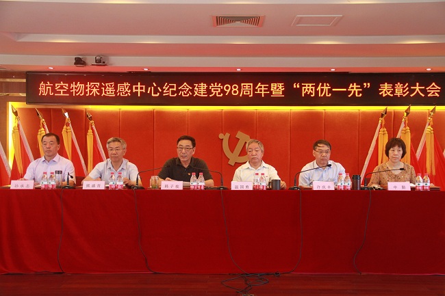 为庆祝建党98周年,表彰先进、鼓舞士气,7月1日,自然资源部中国地质调查局自然资源航空物探遥感中心隆重召开庆祝建党98周年暨“两优一先”表彰大会,中心在职党员、入党积极分子等近200人参加会议。
