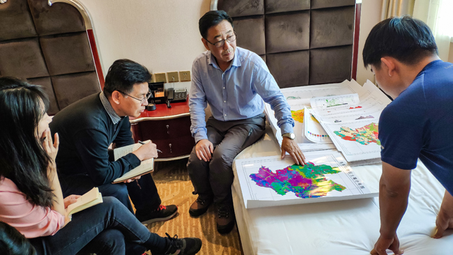韩子夜主任对项目取得的认识和初步成果给予了肯定,对生态地质调查工作提出了具体要求,一是践行习近平生态文明思想,注重多学科、多专业融合,力争在近期形成山水林田湖草整体保护修复地学建议和一批可推广应用的生态地质调查成果,有力支撑国土空间规划与生态保护修复;二是在北方干旱半干旱地区,注重地表水与地下水转换关系分析,关注华北高原、内蒙高原内陆湖的退缩问题和北方生态屏障廊道建设,加强系统性分析评价,为生态安全战略研究提供决策建议;三是加强与地方对接服务与合作,让生态地质调查工作切实满足地方政府的需要。