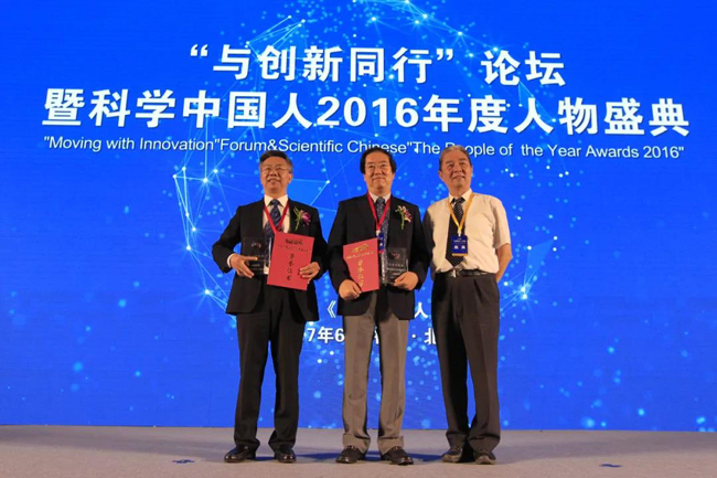2017年6月,国务院参事、科技部原副部长刘燕华为《科学中国人》年度人物——杰出贡献奖获得者熊盛青(左一)颁奖